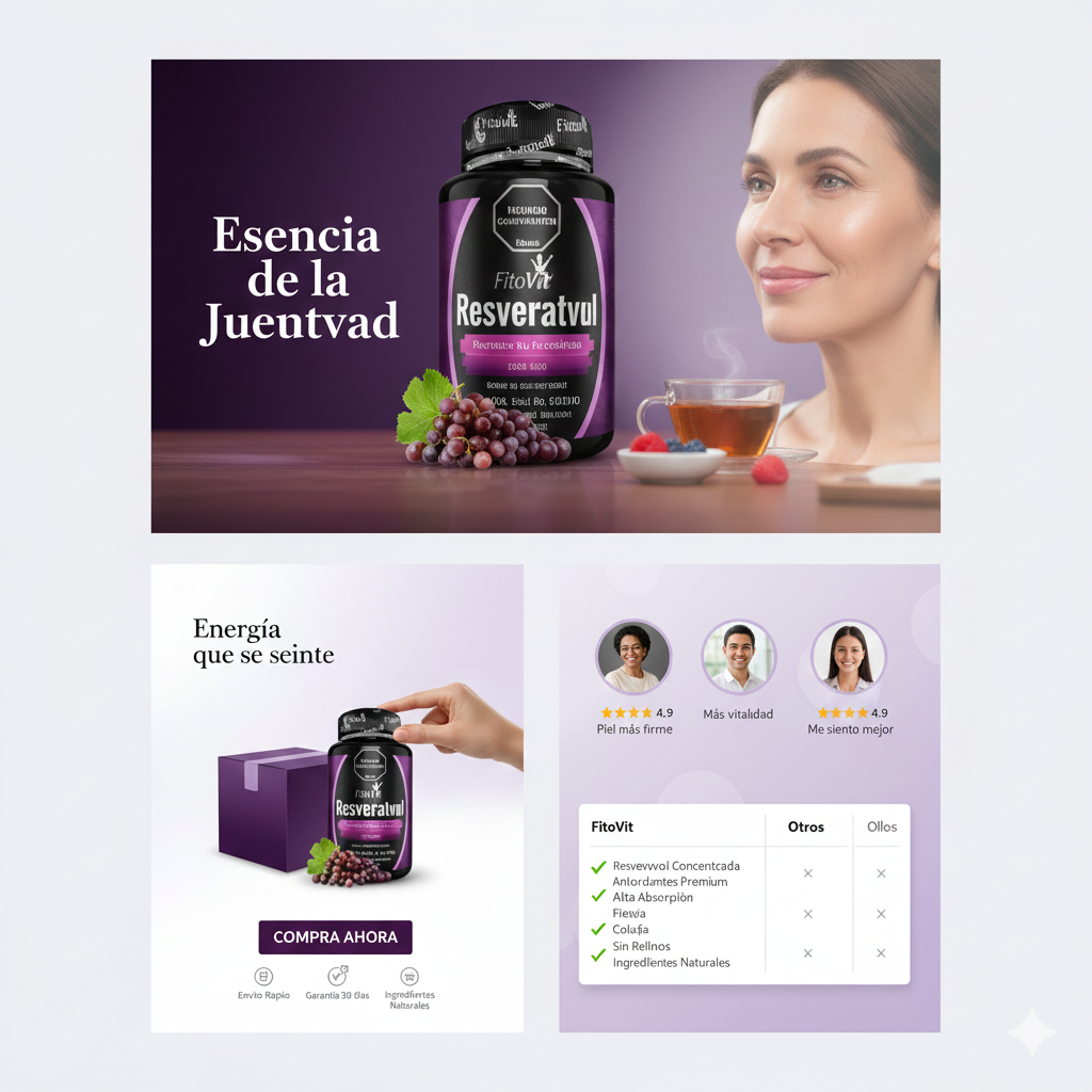 Con resveratrol y colágeno, apoyas la protección celular y la regeneración diaria.