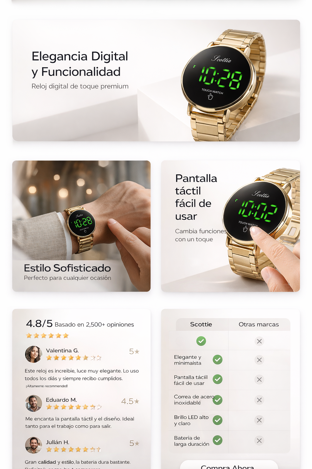 • Compra con respaldo: disfruta tu reloj con la tranquilidad de una garantía que protege tu inversión.